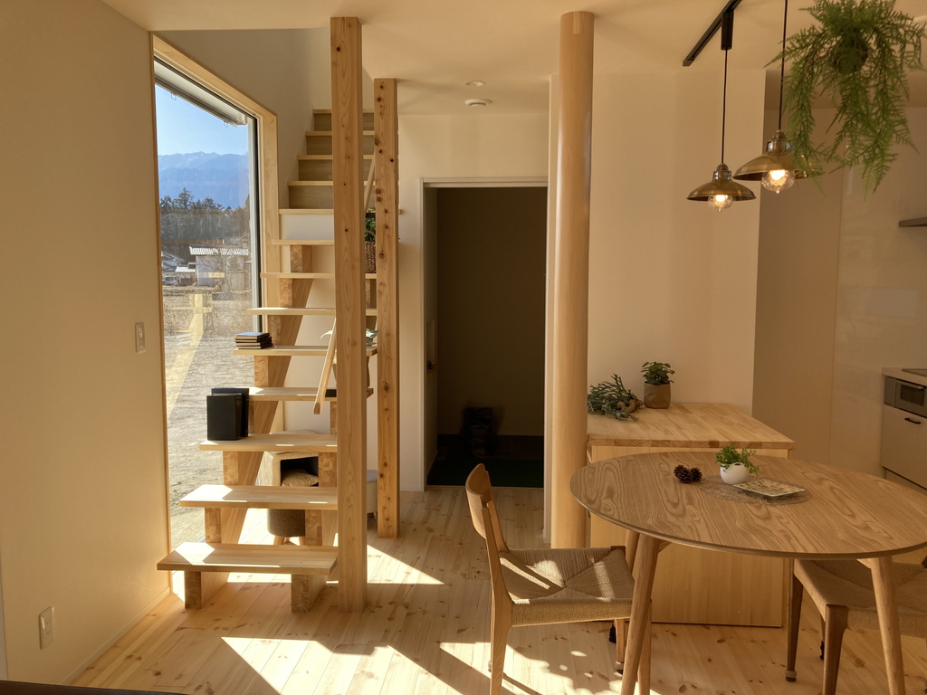 窓から見える山々を眺めながらほっと深呼吸できる、そんな居心地の良いおうちが完成しました。